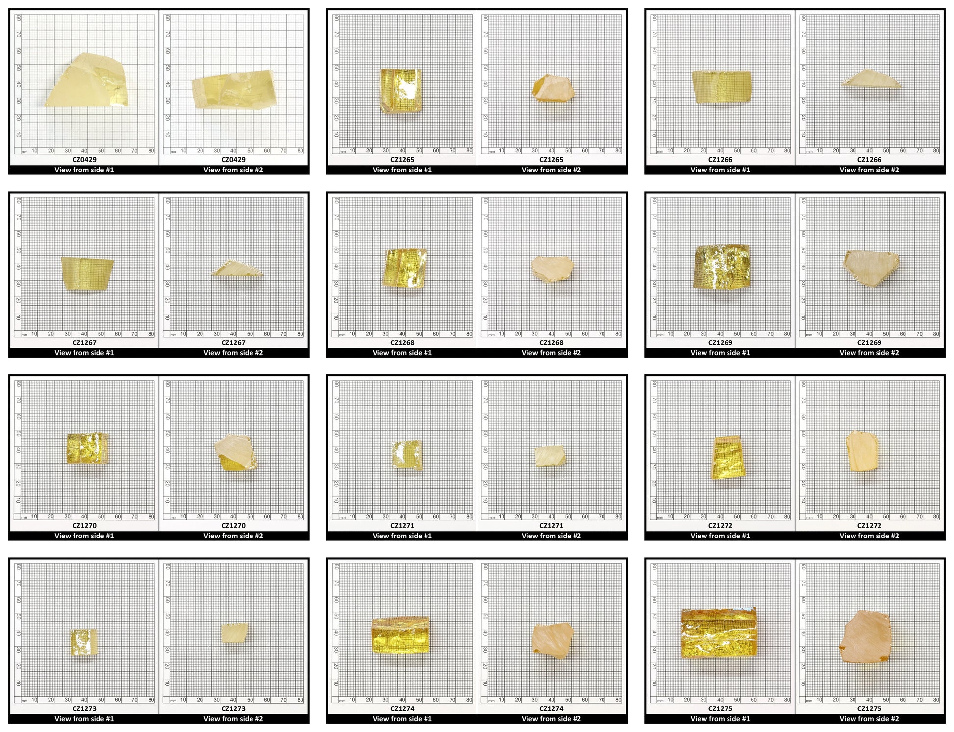 Various sizes of Canary Yellow Diamond Cubic Zirconia rough for faceting and gemstone creation.