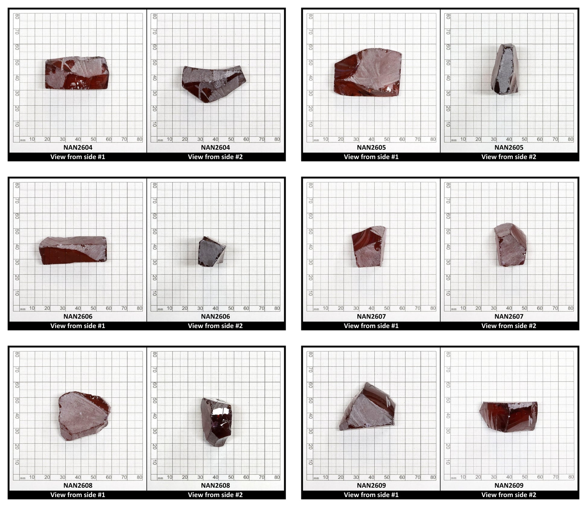 Various weight pieces of Marsala Color Changing Nanosital lab created rough for faceting and gemstone creation.