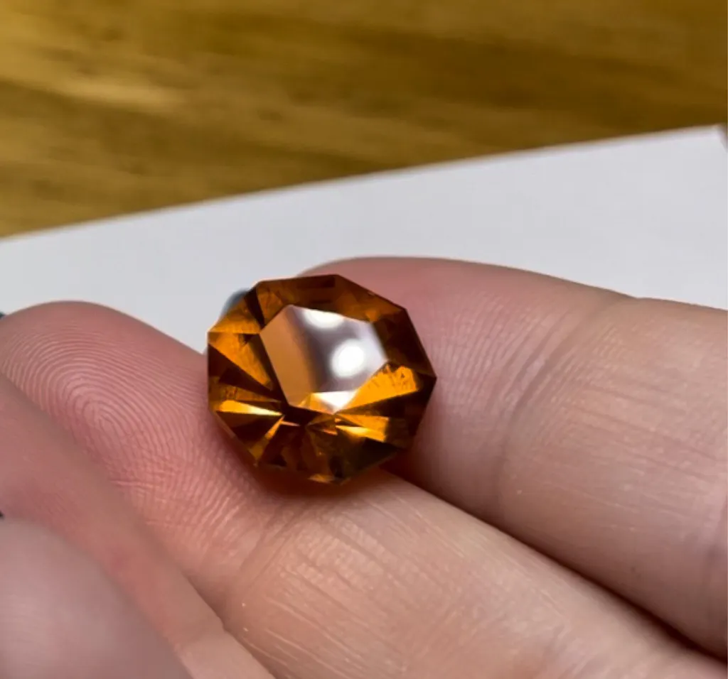 This simulated stone has a pinkish-orange color similar to natural padparadscha sapphire, transparent and has no inclusions.